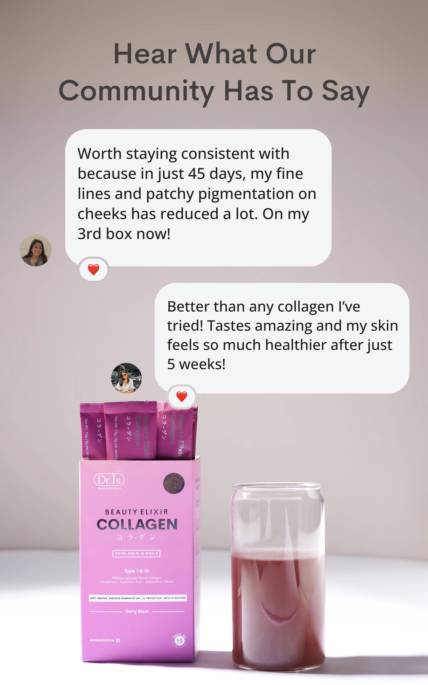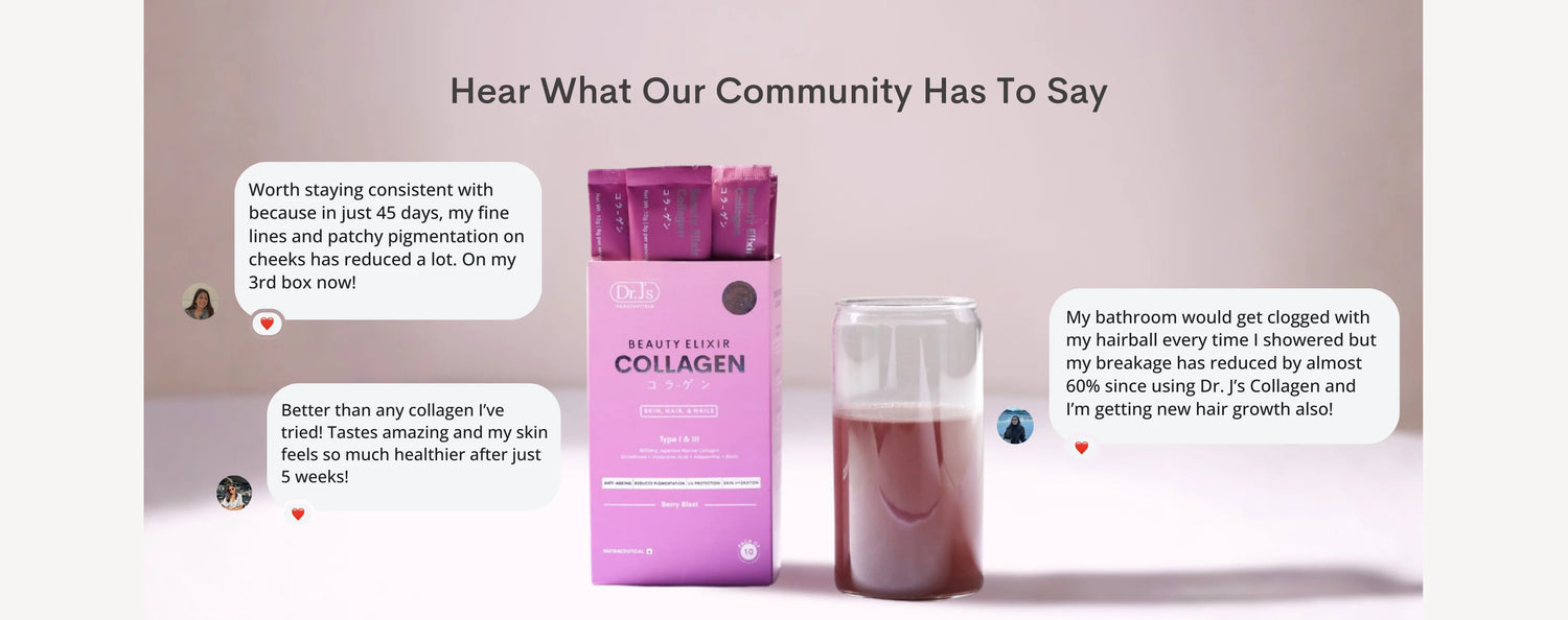 Dr. J’s collagen is ideal for those 25 & above, especially those noticing early signs of aging like fine lines, dull skin, hair thinning, or brittle nails. As collagen production naturally declines by about 1.5% annually after your mid-20s, Dr. J’s Beauty Elixir helps replenish collagen levels, support skin elasticity, reduce signs of aging, and promote stronger hair and nails from within.