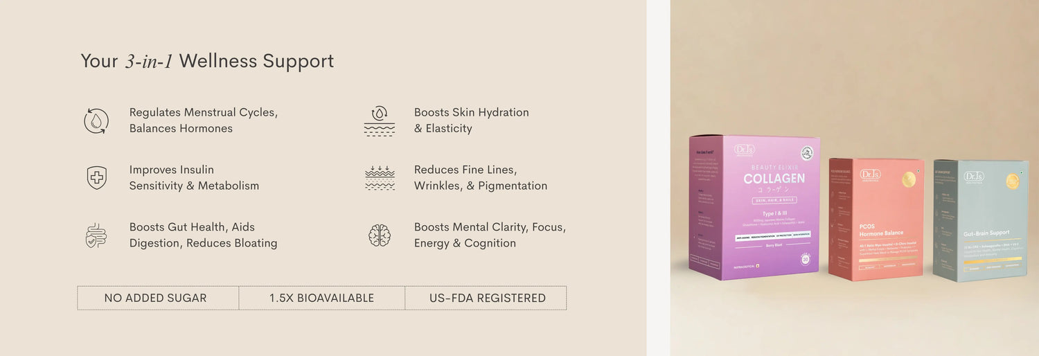 Because it gives you a complete wellness routine: Beauty Elixir Collagen for beauty, Gut-Brain probiotic for gut & mood, and PCOS Hormone Balance supplement for balancing hormones. The 3 together target the most common women’s health concerns holistically, and you save more compared to buying them individually.