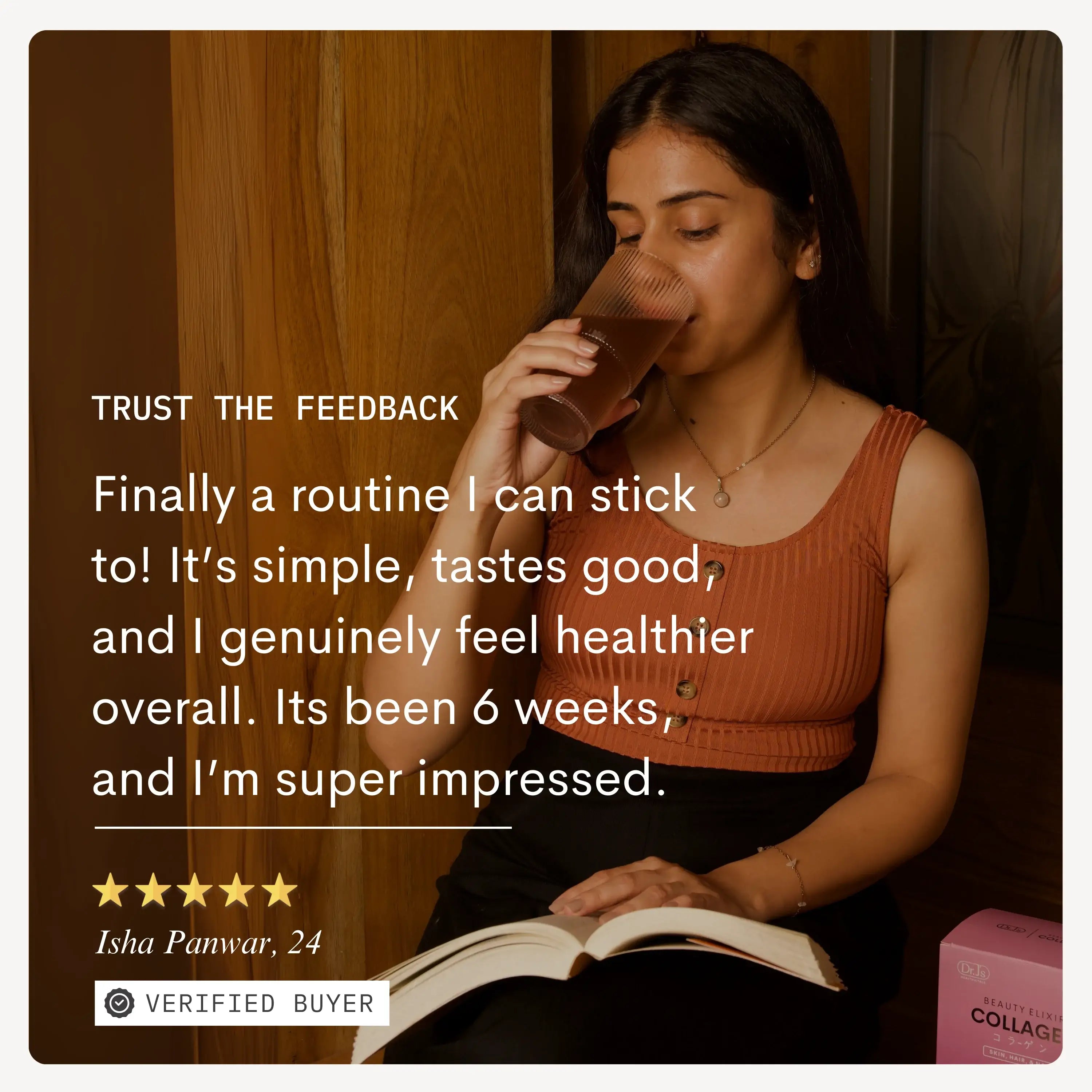 Improved gut health & digestion, steady cycles, smoother skin and reduced pigmentation & fine lines, with stronger hair & nails.