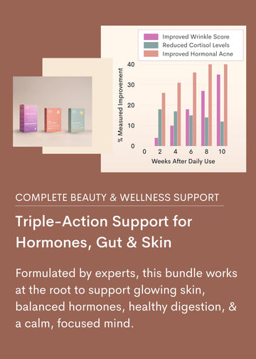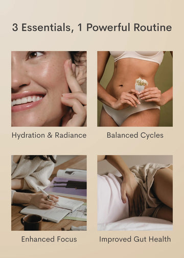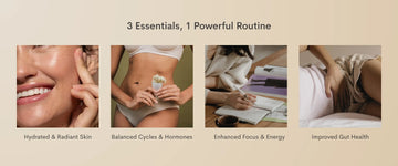 Three daily essentials. One ritual. Thoughtfully designed to support your gut, balance your hormones, and deliver full-spectrum beauty support for your skin, hair, & nails. This bundle is the daily foundation for every phase of your health journey. Because lasting wellness begins when all three are in harmony.