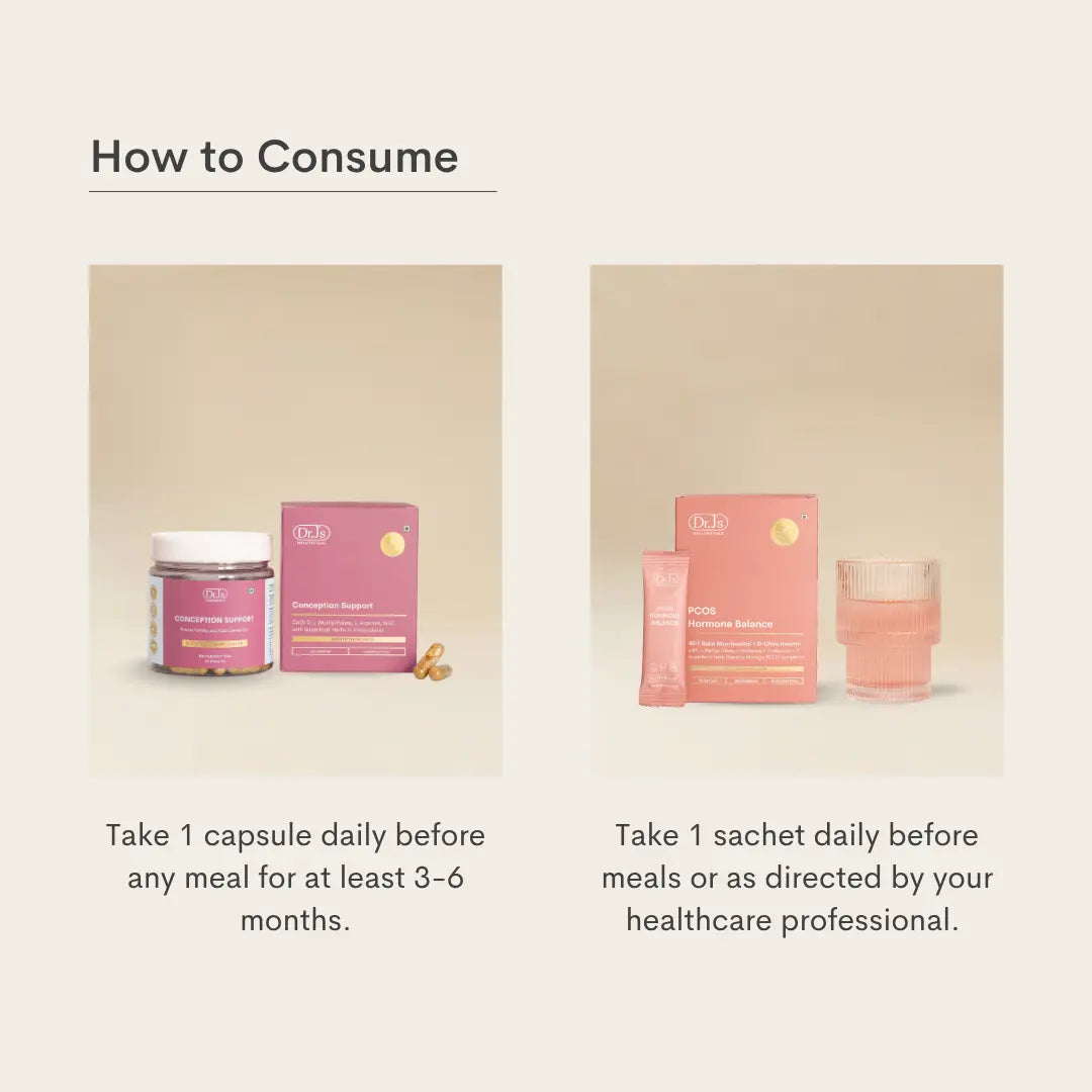 PCOS can impact ovulation, egg quality, and cycle rhythm, which directly affects fertility. The bundle supports both hormone balance & reproductive health together, helping regulate cycles, strengthen egg quality, and improve conception outcomes more comprehensively through root cause healing.